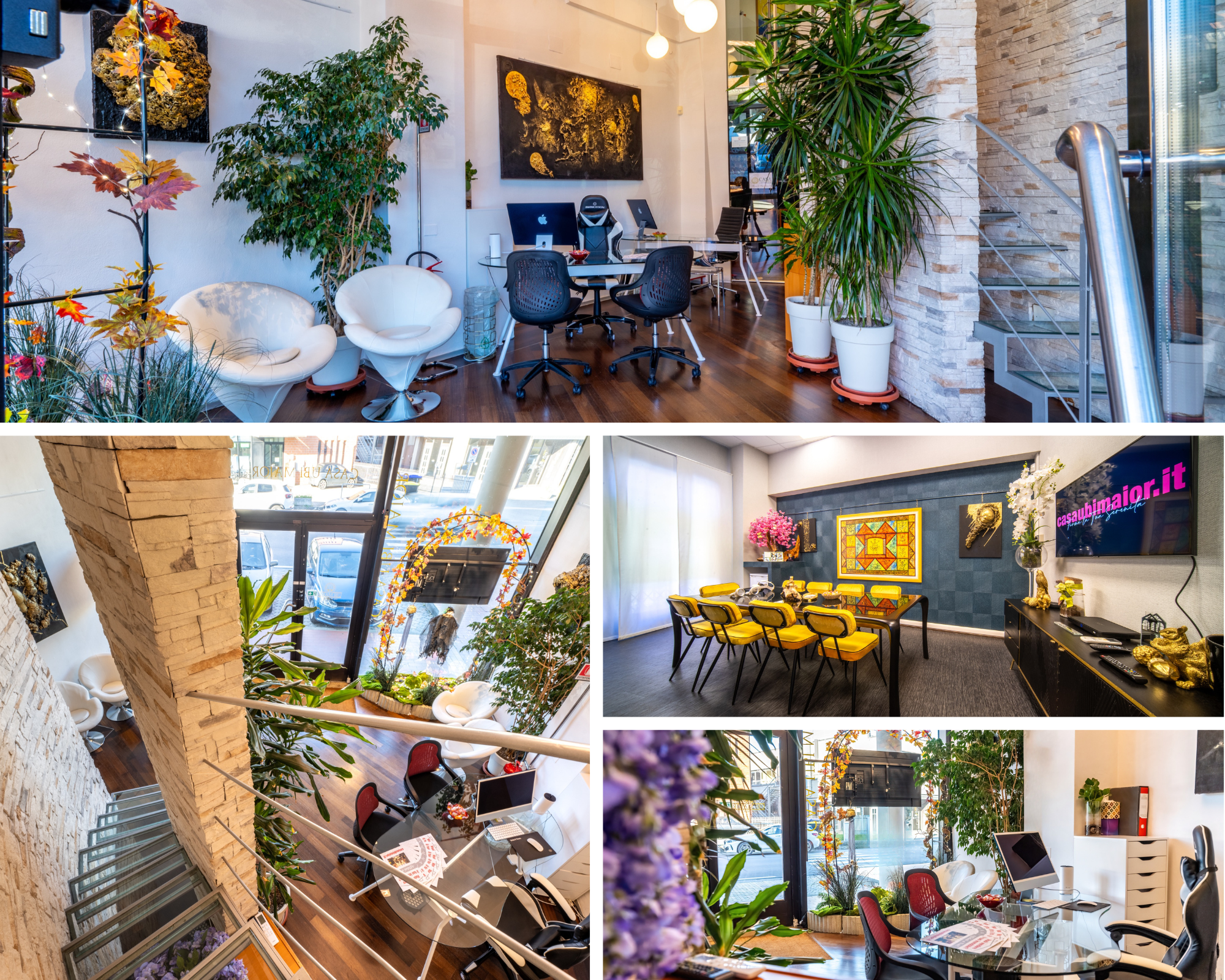 Casa Ubi Maior, nella sua forma attuale, prende vita nel 2019 con l’apertura dei nuovi uffici, progettati con un look moderno e distintivo rispetto alle agenzie tradizionali: quadri, piante e arredi pensati per accogliere il cliente in un ambiente familiare e confortevole.